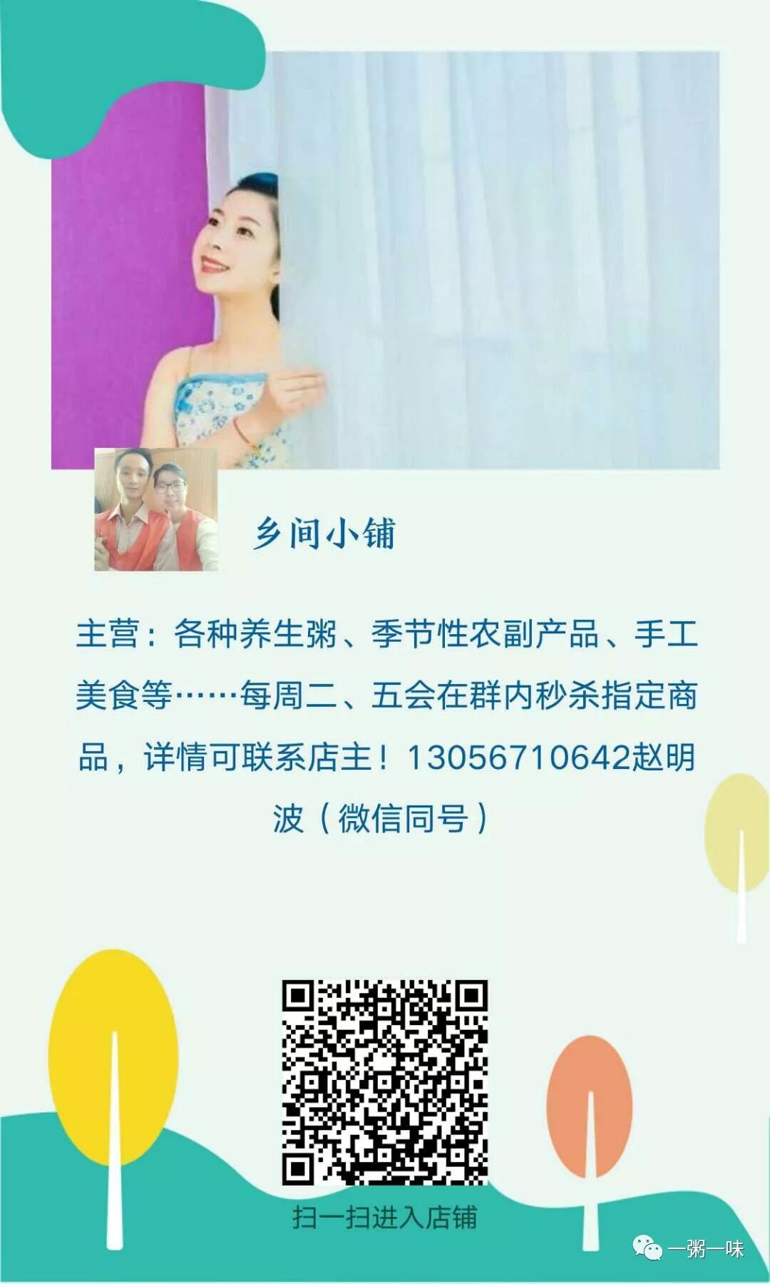 关于我们:乡间小铺绿色产品分享群坚持“寻找最好的美食,以最优惠的价格分享给客户朋友”每周二、五晚上19:30---20:30在群内做秒杀活动,且每种产品经过群主赵明波试吃、筛选等过程纳入,每次秒杀不重复……喜欢的朋友可以直接联系她哦!也欢迎更多的商家来做秒杀活动……