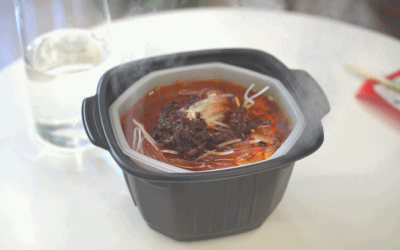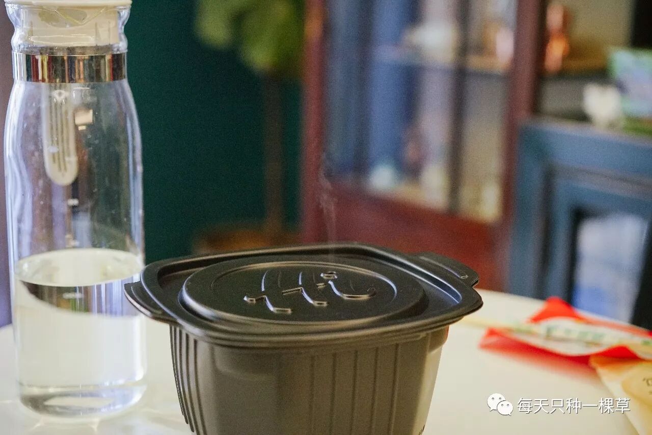 最后记得把加热包放在底部,也倒上一点冷水,加到注水线位置就可以了,再把酱料、菜品放上去,盖上盖子(注意不要堵住出气口哦),等待15分钟左右,就可以开吃了!