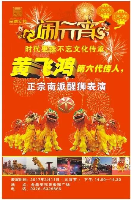 金鼎安邦特邀最顶尖、最专业、正宗南派龙狮演艺团队为广大市民朋友带来精彩的飞狮表演.