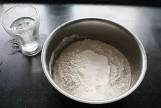 1.在一斤面粉里加入三克左右的盐,兑上凉水和面,面可以和得硬一点。