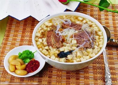 通过煮制,汤汁完全收入馍内,此馍筋而韧,粘而滑,吃后碗内无汤、无馍、无肉