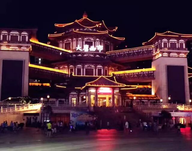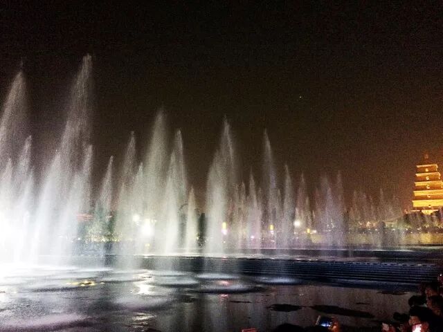 大雁塔北广场,整个广场由水景喷泉、文化广场、园林景观、文化长廊和旅游商贸设施等组成。每天晚上都有亚洲最大的音乐喷泉表演,场面可以说是非常壮观。