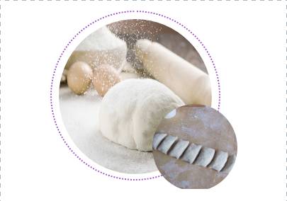 把涂抹好作料的长条卷成一个小卷,竖直立在桌上,用擀面杖从面团的上方由上而下按压、擀制,直到擀成你所需要的形状,或圆或方,最后撒上一层芝麻。没有规矩不成方圆,酥锅盔的方圆代表着南充人的品行。传承的制作手法改良的调味作料,由上而下的擀制使作料更加融合味道更加均匀,保证每口下去都酥脆化渣。