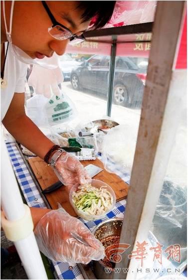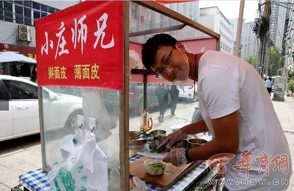 世界500强的外企部门主管,年薪20余万元,出差只坐飞机,酒店只住五星级。但为了创业,今年5月,27岁的庄栋决定辞职,离开上海。揣着西安交通大学研究生毕业证,他重新站在母校对面那条名叫“金水路”的巷口,开始了新生活——卖凉皮。 ![]()