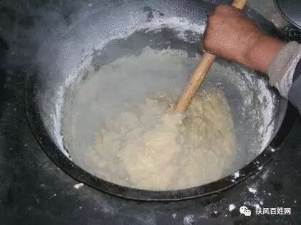 等到搅团基本熟了,娘撤掉灶眼里的全部柴火,再盖上锅盖,慢慢嚓一会儿,这一锅搅团就可以起锅了。