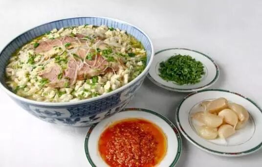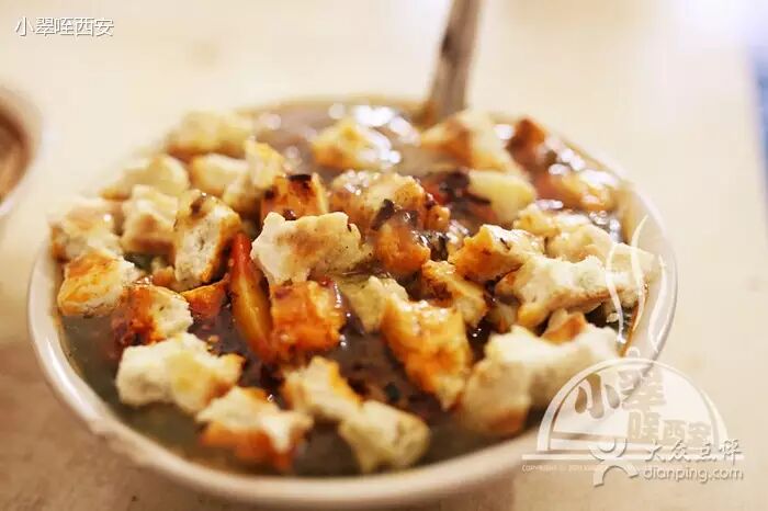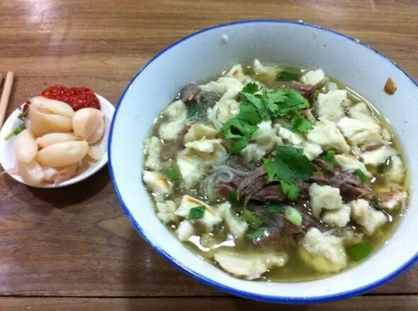 是回民的清真食品,一般适合当做早餐。具体而言就是牛肉丸子什锦蔬菜胡椒汤,汤是勾芡的,有些粘稠,吃的时候浇上陕西著名的油泼辣子,颜色火红鲜亮,别说吃了,看起来都十分诱人。汤味道咸香,有牛肉,蔬菜,胡椒,辣椒综合起来的香味,再把特质的馍(有的家是锅盔,有的是坨坨馍)泡进去,汤的香浓和面饼的淳朴结合,想想都过瘾。这家也有腊牛肉夹馍,牛肉较李老四更加具有牛肉本身所带的独到香味,十分推荐,不好吃你们可以打我。我一般早上去吃一份,然后带走一份,把午餐顺便解决了,哈哈。至于回民街有名的胡辣汤(如李维一,刘老虎,老刘家伊味香),基本都喝过,觉得都不如马奎。