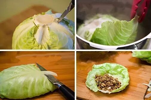 材料 :新鲜大白菜,香菇、猪肉、米饭、六月鲜酱油、盐、胡椒等。