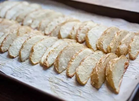 将土豆去皮切成条状小块,然后撒上盐和胡椒粉等调味料,淋上一勺橄榄油,放入烤箱,200度约20分钟,烤至表皮酥软即可。