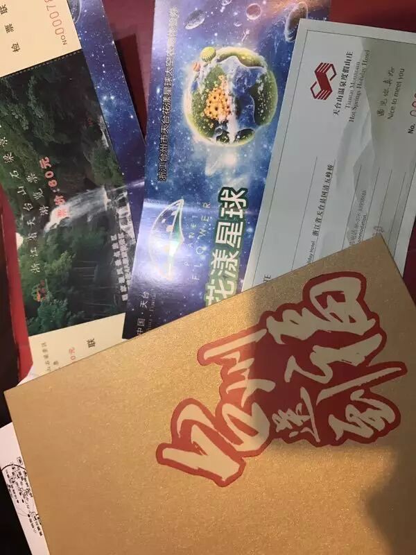 台州市旅游局提供的旅游大礼(景区门票、酒店住宿等)、青春宝礼盒、灵隐新年挂历、舜展汽车充气泵……