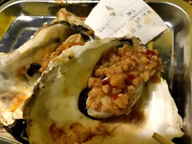 腰子、肉和筋烤的味道比较中规中矩,每串上的份量不多不少,但吃着很满足。生蚝的肉超大,混合着上面的配料一起咬下,咸辣可口。