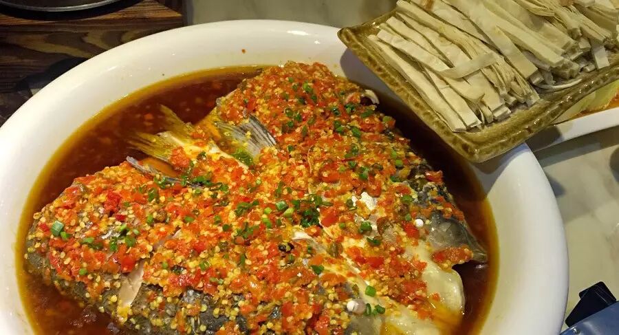 其实从度娘那大家就能找到,最早鱼头泡饼算是一个京派美食,不过这家老板在几种菜系中找到了新平衡,用剁椒鱼头来泡饼,既有鱼汤泡饼的舒坦,又有剁椒鱼头的爽口,这配搭还是很适合咱西安人的口味。