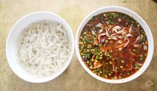 面条薄、筋、光,汤汁煎、稀、汪,味道更是酸、辣、香,飘香的味道,瞬间刺激出了食欲……