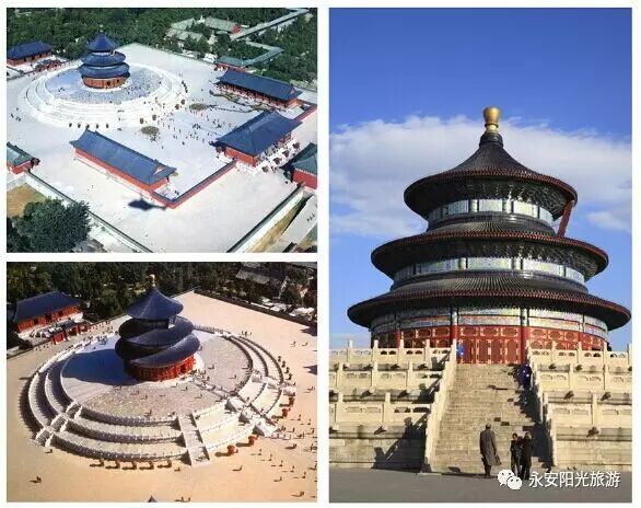 天坛是明清两代皇帝每年祭天和祈祷五谷丰收的地方。现保存有祈谷坛、圜丘坛、斋宫、神乐署四组古建筑群,是中国也是世界上现存规模最大、形制最完备的古代祭天建筑群。