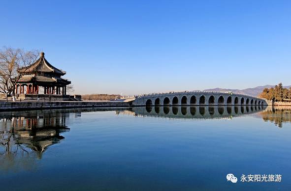颐和园,是世界上最完美的皇家大花园,该园集中国南北园林建筑艺术之大成,拥有世界上最长的画廊和游廊、中国最大的石船和古亭,以及十七孔桥等著名建筑。