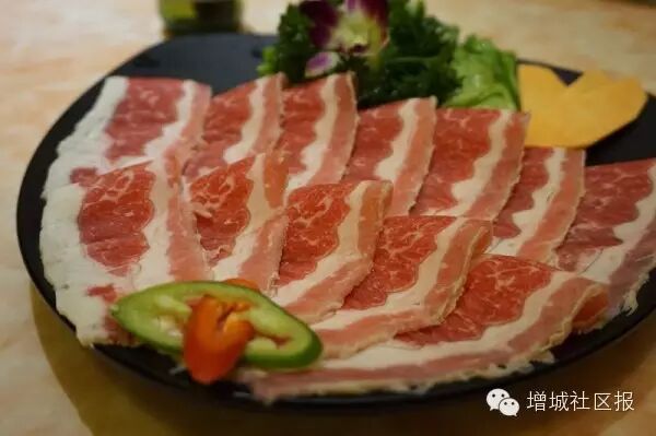 胸叉肉,切得薄厚均匀,肉质鲜嫩,10秒翻下身,20秒就可以开吃,再蘸上店里秘制的酱料,一口一片,口齿留香,令人久久回味。