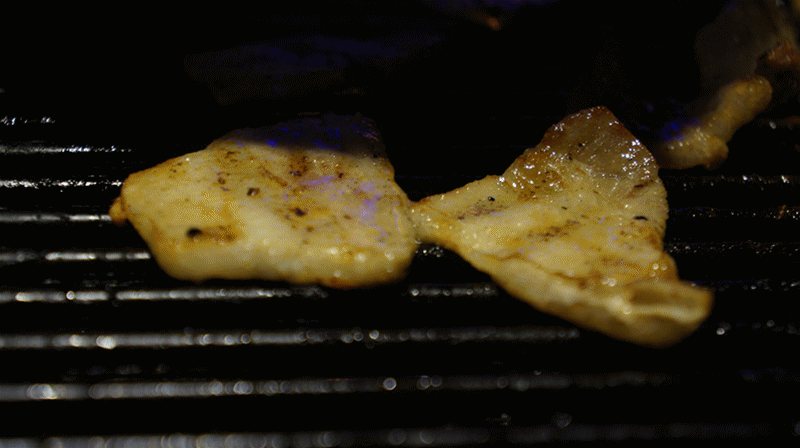 经过腌制的肉吃起来口味浓郁,烤熟后与酱料搭配,一点都不腻,啧~太美味了