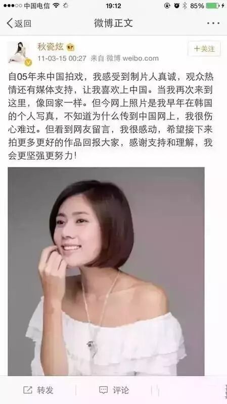 2015年的时候,秋瓷炫发微博公开恋情,当时对中文还不太熟悉的她,一直感谢遇到最好的他。