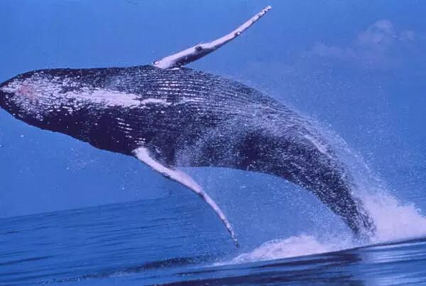 我们所看到的鲸鱼喷水,其实是它们在深呼吸。鲸鱼的鼻孔长在头顶两眼中间,当鲸鱼从海底里浮到海面换气时,它肺部中强大的气流会冲出鼻孔,将鼻孔上的海水喷出来,于是海面上就出现了高高的水柱。