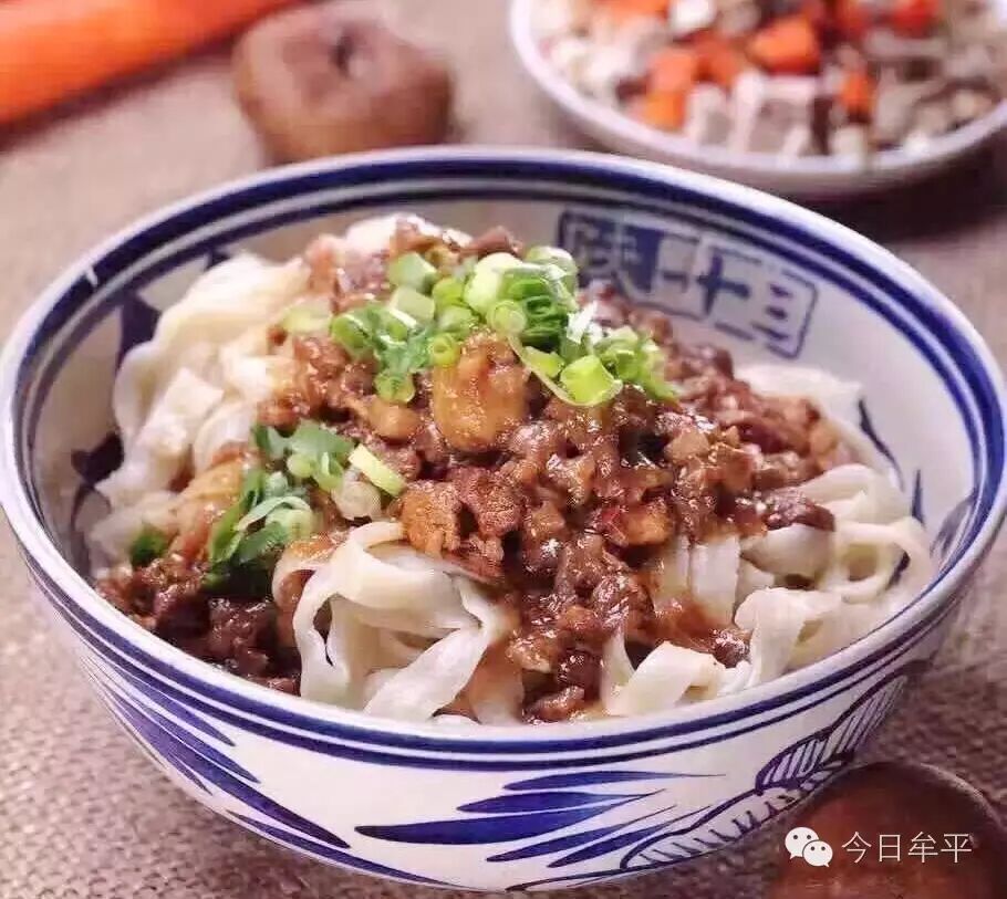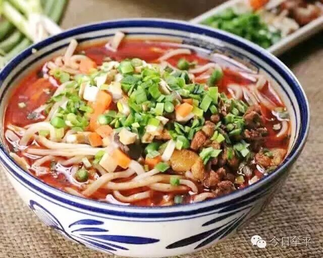 而一碗地道的岐山臊子面更是让人胃口大开。整碗看起来就是“面白薄筋光,油汪酸辣香”,面条厚薄均匀,臊子鲜香,红油浮面,汤味酸辣,筋韧爽口,老幼皆宜。吃着热腾腾的面,再配一盘秘制调料的特色凉皮,那种极致的口感在牟平绝无二家……