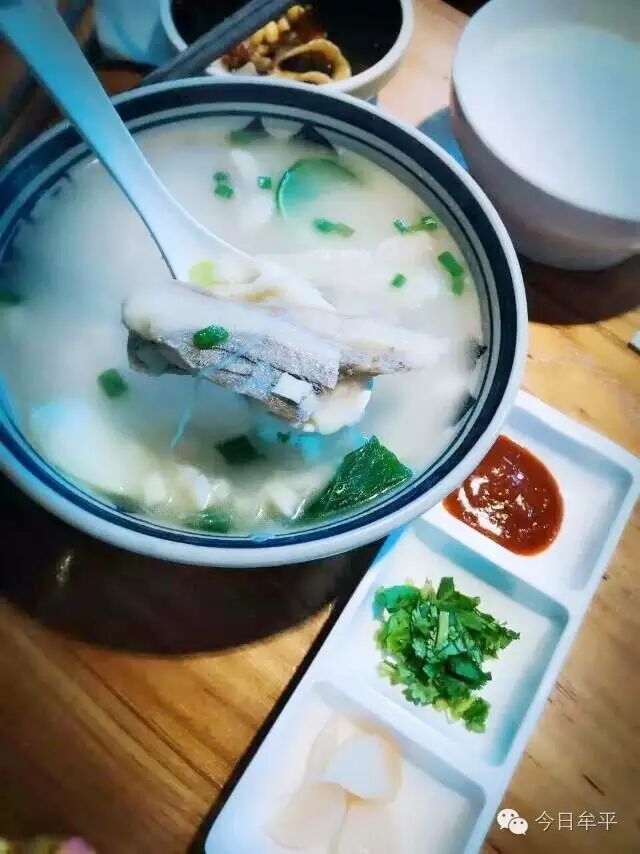 陕十三羊肉泡馍,白白的汤,浓浓的味道,嫩嫩的羊肉,小块的馍,精致的配菜,好吃的很!