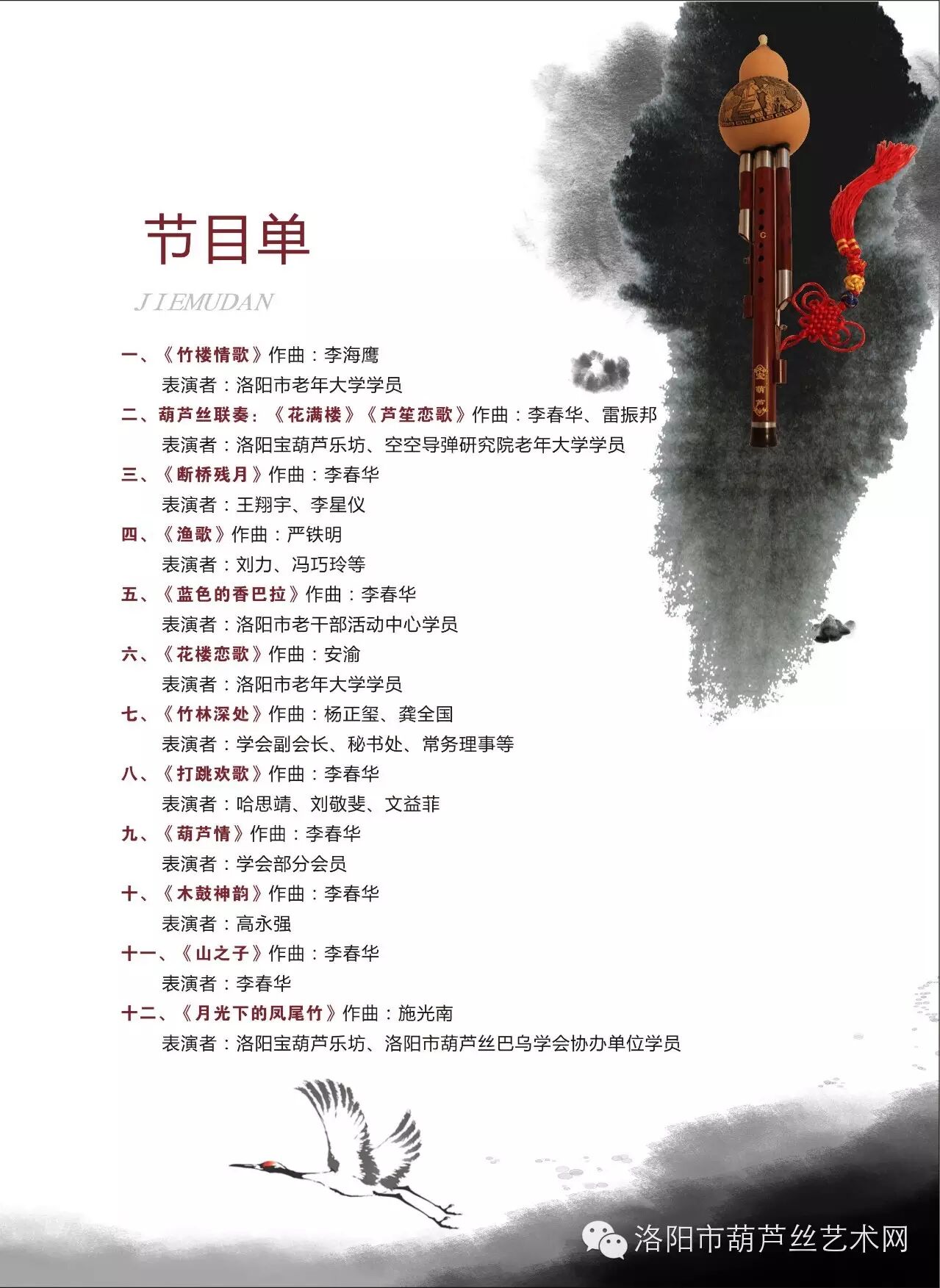 洛阳市葫芦丝巴乌学会成立大会暨中国梦-葫芦情洛阳葫芦丝专场音乐会专场音乐会是在洛阳市文化广电新闻出版局、,也是我市建市以来的首次葫芦丝、巴乌专场音乐会,具有重大的意义。