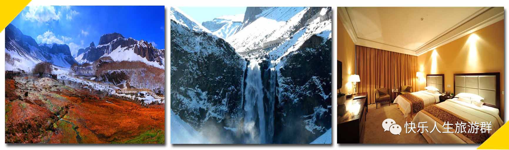 D3 | 长白山一地 用餐:落地早餐、午餐朝鲜族特色餐、晚餐自理 【魔境长白山】早抵后,乘车赴关东第一山【长白山北景区】;来到长白山景区换乘【环保车,自理85元/人】,观赏烟波浩淼的原始森林,世界罕见的垂直景观带;乘【倒站车,自理80元/人】登山,观看世界上海拔最高的火山口湖—长白山天池,世界上落差最大的火山湖瀑布—长白瀑布,电视剧《雪山飞湖》外景拍摄地—小天池药王谷,感受冰瀑飞溅。游览【小天池】,在周围的岳桦树环绕下仿佛套上一个银色的光环,所有这里又名“银环湖”这里也曾经是《西游记》和《雪山飞狐》的拍摄地!参观【绿渊潭】四周密树茂林,环境优雅、娴静,双瀑布依山相伴,奔流不息,雅致独到。素有小九寨之称的绿渊潭美轮美奂。 【体验“汤文化”】晚入住景区五星温泉酒店!体验北方独有的寒地温泉“汤泡”(赠送)。在原生态的环境中,在从未破坏过的自然美景中,由一条自然形成的猞猁河纵贯南北,来自山脉底部2208.94米的花岗岩温泉水脉,经专业机构检测,水质为弱碱性、锶含量极高,是极优质的碳酸钙泉,蕴含多种对人体有益的矿物质和微量元素,是非常难得的寒地温泉。让雪地温泉带走亲连日的疲惫、尽情享受假期带来的惬意吧! 【温馨提示】: 1.温泉:温泉为男女混浴、请自备游泳等所需物品。 2.用餐:因长白山景区内用餐有限、为了让大家更好的品尝道朝鲜风味此天中餐按排在景区外用餐、中餐用餐时间稍晚大约在14点左右(辣白菜土豆片、辣炒年糕、辣炒五花肉、酱汤等)以实际按排为准。 | 二道 |