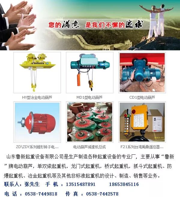 电动葫芦厂家_鄂尔多斯电动葫芦_山东起重机由山东鲁新起重设备有限公司提供。山东鲁新起重设备有限公司(www.tsqzj.com.cn)实力雄厚,信誉可靠,在山东 泰安 的工程、建筑起重机等行业积累了大批忠诚的客户。公司精益求精的工作态度和不断的完善创新理念将引领山东起重机和您携手步入辉煌,共创美好未来!