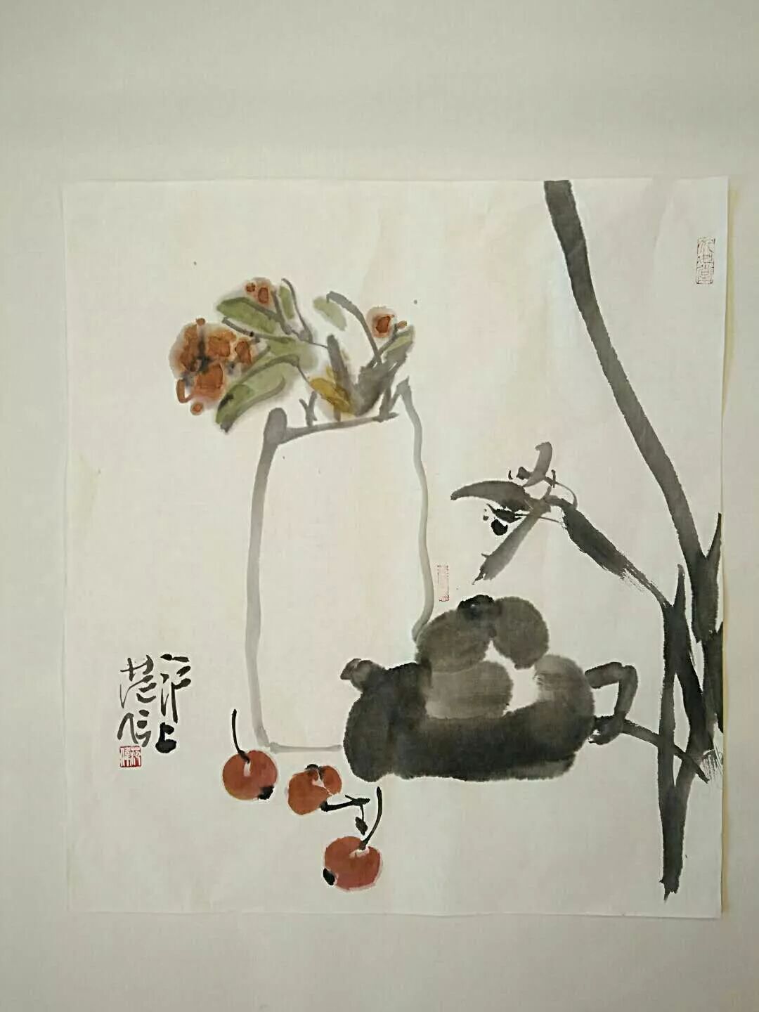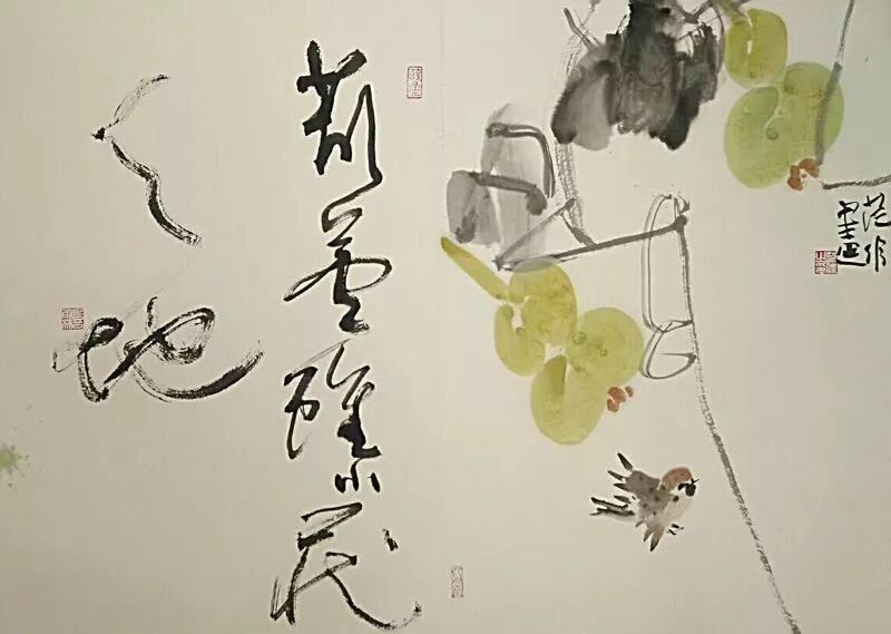 可以想见范伟先生画画葫芦以自娯,悠哉悠哉,享受无穷的乐趣。这也许是他钟爱画葫芦之主因。然而他画葫芦是因为喜欢齐白石先生的许多"小品",其中就有葫芦。他以为齐白石的葫芦福相,寓意深远。因而以齐白石为师便成了他的追求。