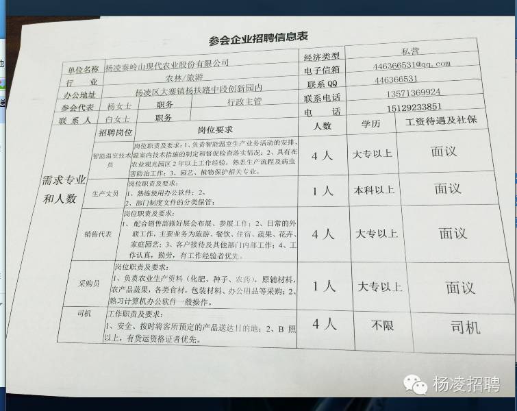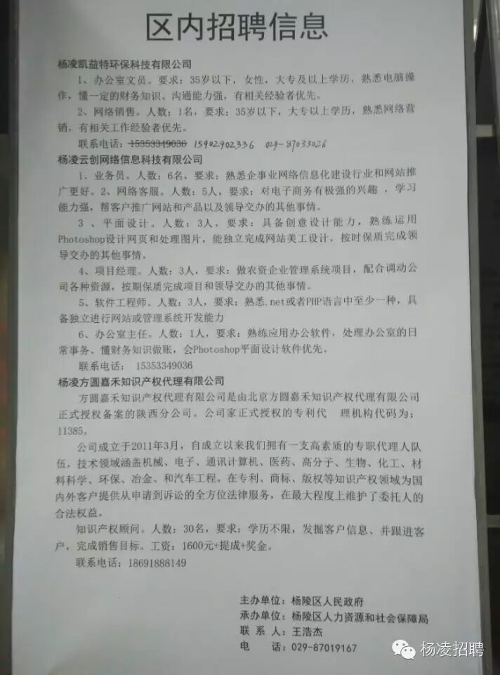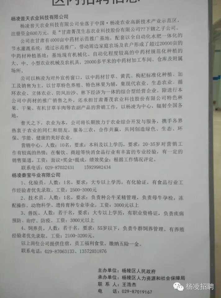 电话:029-87071861(联系我时请说明是在杨凌招聘微信看到的……)