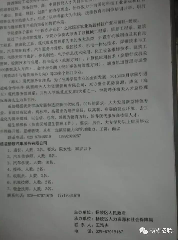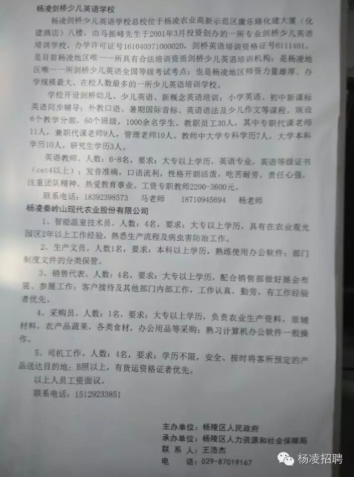 电话:87032325(联系我时请说明是在杨凌招聘微信看到的……)