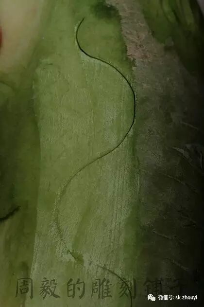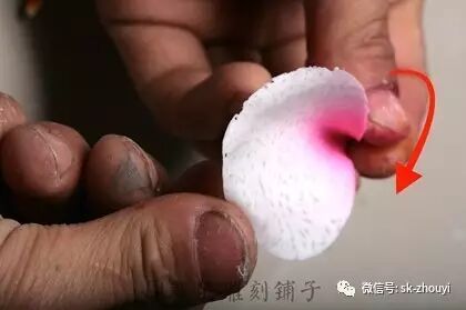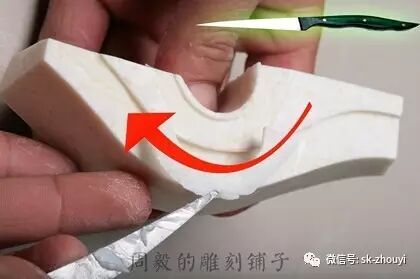 以凹槽为起点依次竖着掏往底部中间,注意用力均匀。