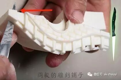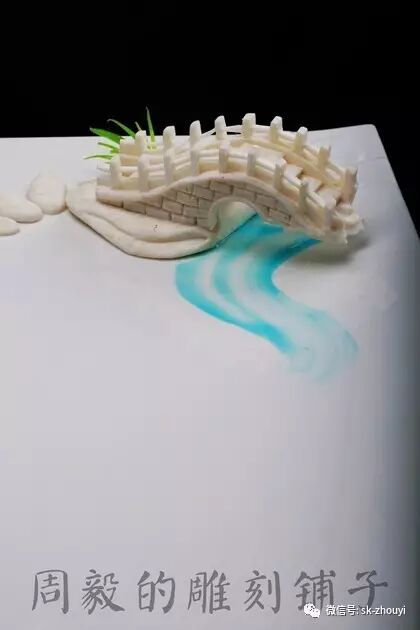 刻出另外一面桥体并衔接。桥体另外一段可用掏刀掏出砖面的陈旧感。