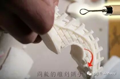 主刀沿着画线取出拱桥,并在桥身做出层次去废料。