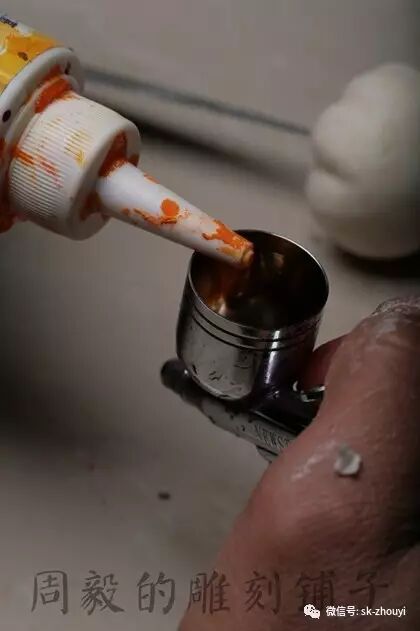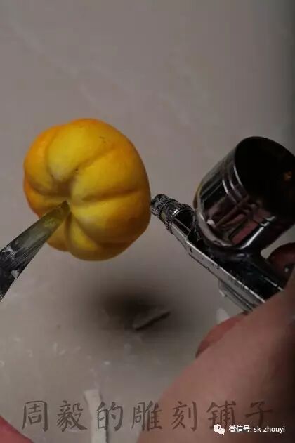 小喷枪装上黄色素,喷洒于花骨朵整体。