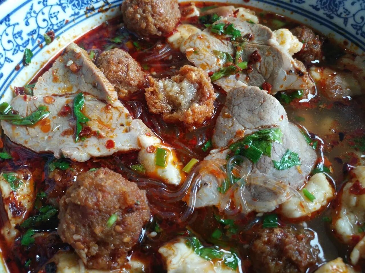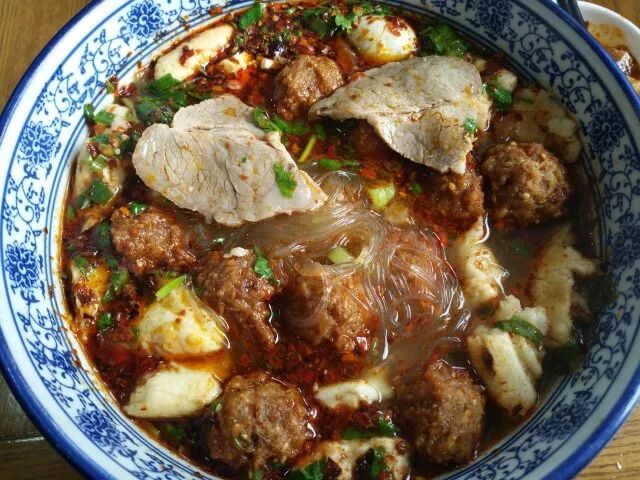 光听名字就知道,骨汤泡的秘诀在于汤,他家制汤的方法就很讲究,把猪棒骨(大骨)洗净砸碎,老母鸡、精肉、二十多种中药材入锅炖熬,撇去浮沫,用小火熬煮,到汤汁浓白似乳为止! 将掰好的馍,用煮沸骨头原汤泡一下,汤汁全都浸在馍里,营养全在里面,出来后加入辅料,香喷喷的泡馍就好了,心心念念的主食终于上桌,热腾腾冒着香气儿,迫不及待拿起筷子,咱们先吃为敬!特色丸子骨汤泡他家的丸子都是店里大厨自己特质的油炸丸子,丸子是熟的,直接倒碗里,搅一搅就可以吃了不要以为丸子骨汤泡就只有丸子哦肉、豆腐、鹌鹑蛋粉丝,萝卜片、豆腐等配菜也非常丰富吃一口馍,麻辣劲道;喝一口汤,鲜味十足;品一口菜,温暖四溢;嚼一口肉,刺激到位。拌着小菜,清脆酸辣,可以就着饭吃。不够刺激,再来几个蒜。 简直吃的不亦乐乎 除了特色丸子泡馍,他家的牛肉骨汤泡、高丽肉骨汤泡也是老板重点推荐对象,属于店里的爆款,吃完泡馍先别急着走,来两杯店里免费的茯茶,有助于消化!