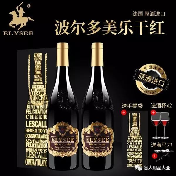 4、【今日感恩特惠专场】爱丽舍红酒 法国原酒进口干红葡萄酒2支装特价正品端午送礼 送开瓶器,新店开业 单宁强烈 滋味醇厚 果香浓郁。