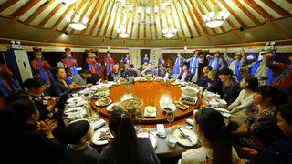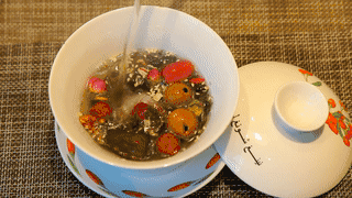 入座可以先来一杯八宝茶(也称“三泡茶”),这是居住在古丝绸之路上的回族和东乡族人待客的传统饮料,也是迎宾茶。以茶叶为底,掺有白糖(或冰糖)、枸杞、红枣、核桃仁、桂圆肉、芝麻、葡萄干、苹果片等,喝起来香甜可口,雾霾天里来一杯可以清肺。