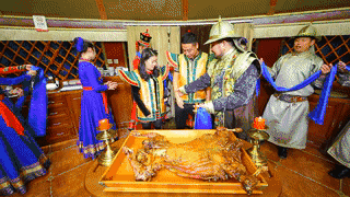 碗蒸羊羔肉与烤花馍