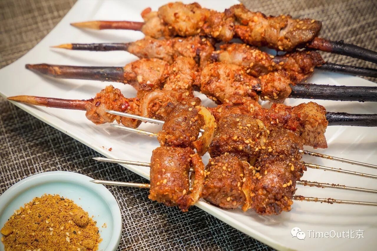 烧烤里的红柳烤驼肉、烤羊蹄也足见特色,尤其是烤羊肉米肠,羊肠里塞满糯米,熏烤过后外酥里嫩,色香味都更胜一筹。
