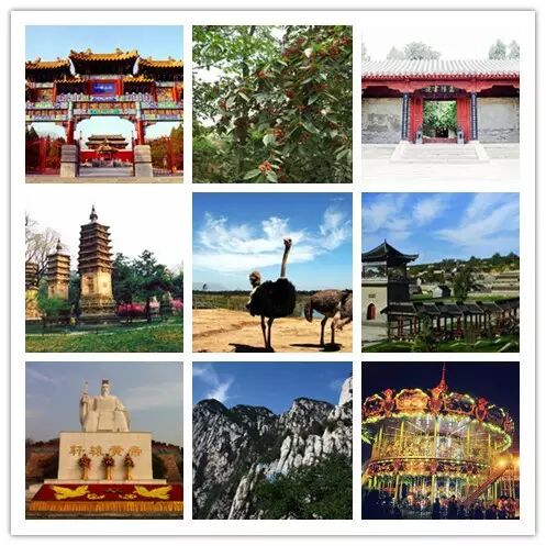美景:塔林、金鹭鸵鸟园、中岳庙、少室山、嵩阳书院、康百万庄园、世纪欢乐园、黄帝故里、郑州樱桃沟