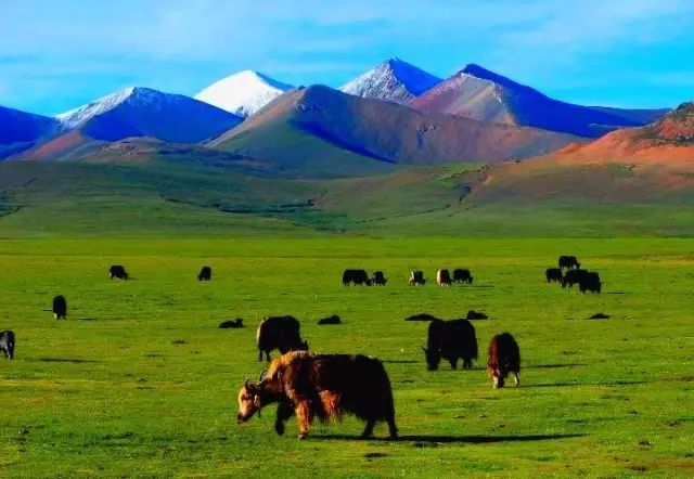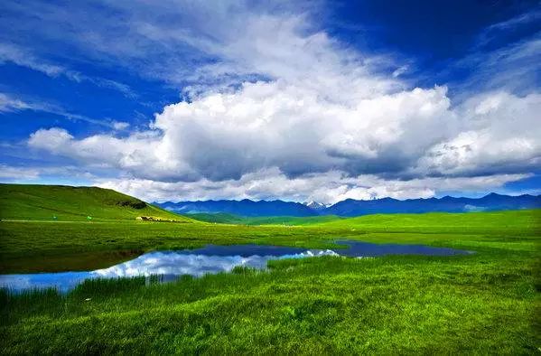 七月的祁连大草原,就是一个天然大空调,那里有一望无际的绿地,和一望无际的蓝天。与草原相接的祁连山还是银装素裹,而草原上却碧波万顷,马群、牛群、羊群点缀其中!