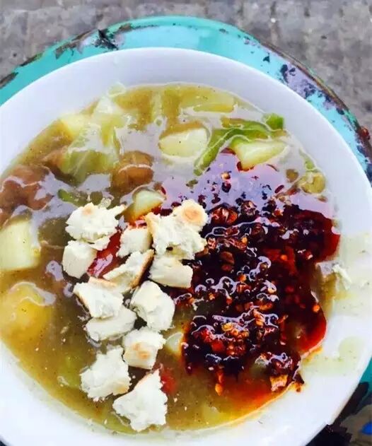 他家胡辣汤属于花椒味重,酱香味浓的类型,很适合泡干饼吃,重点推荐一下他家麻油和辣子,胡辣汤放两三勺麻油,干饼直接过去夹点辣子,那个香啊。