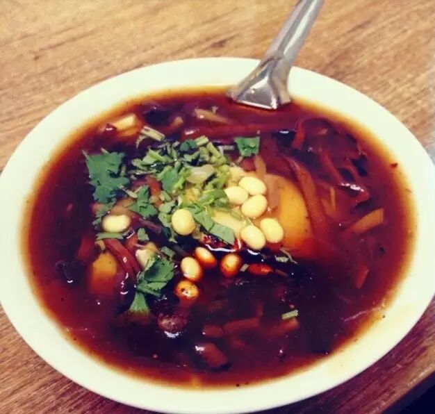 酸汤的味道很正宗,香菜、辣椒、芝麻配起来特别的提味,酸汤浓,酸,辣,咸香,很符合西安人的口味。