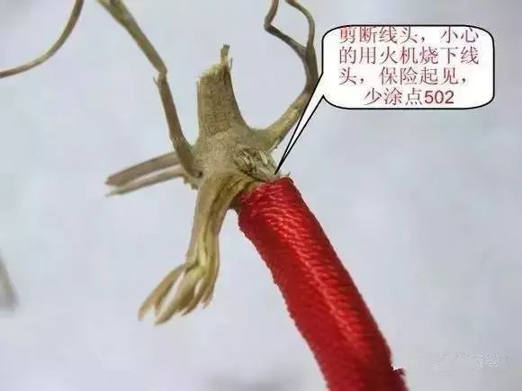 把线头剪断,可用火机小心的烧一下线头,为了防止散开,可以在这儿少涂点502或者其他胶水,注意:一点点就可以了。