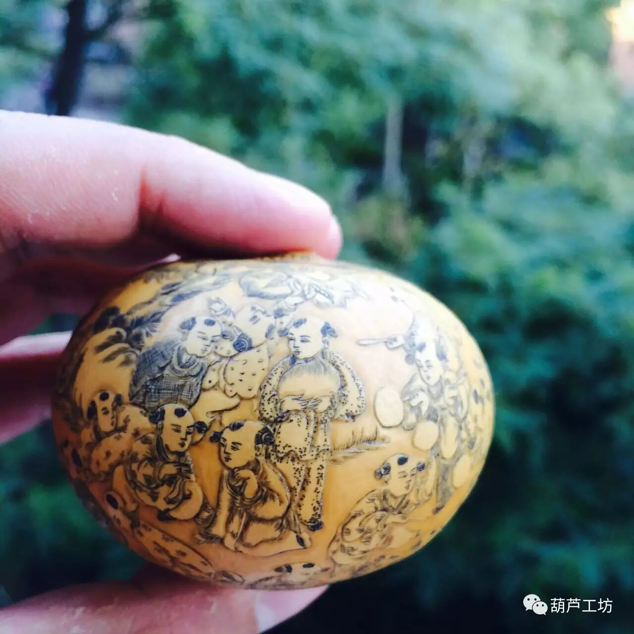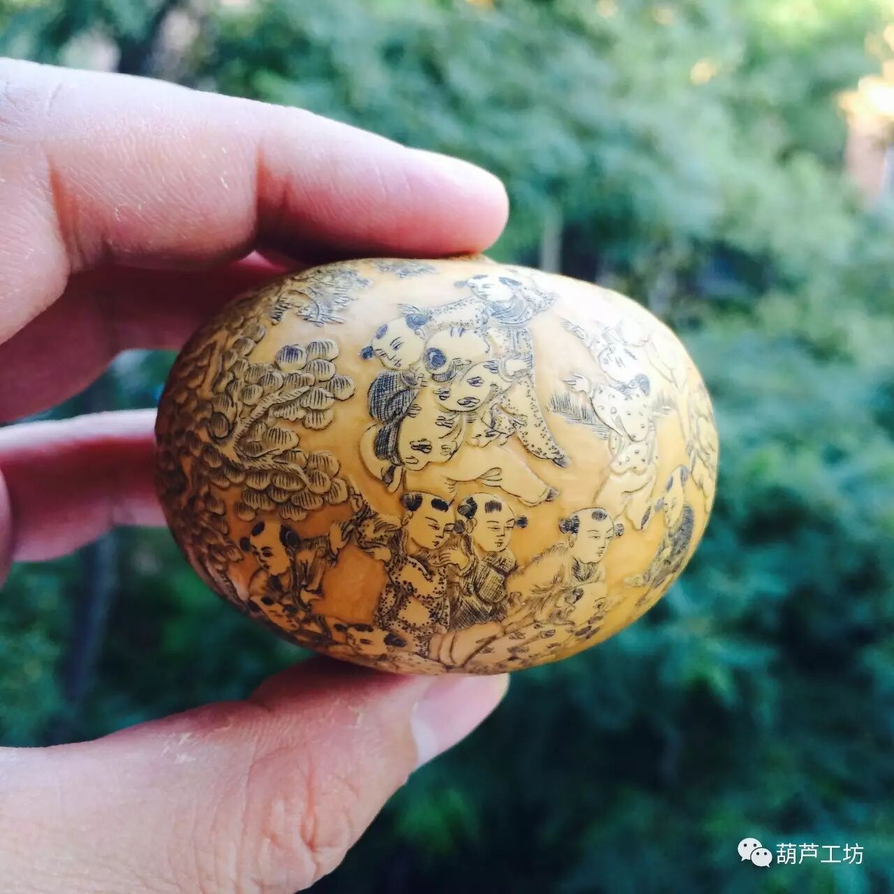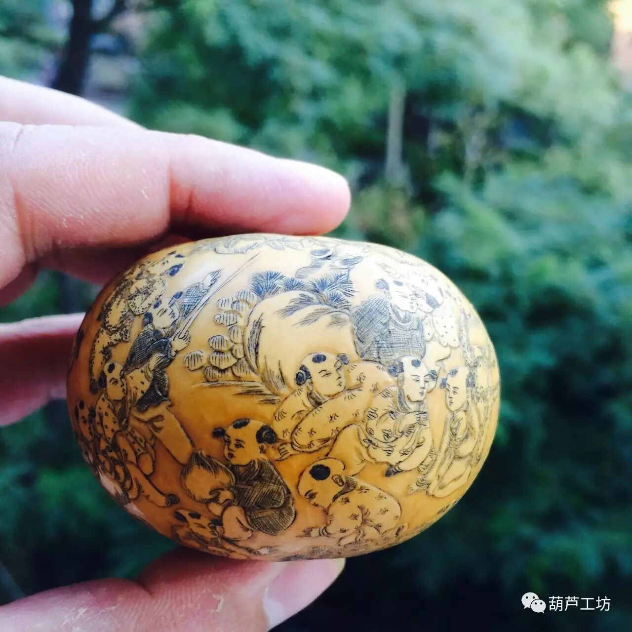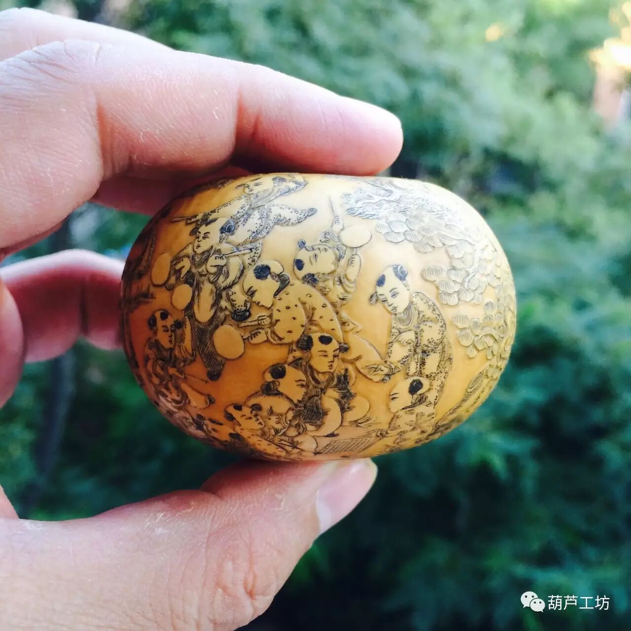 鸡蛋葫芦雕刻浅浮雕《百子图》