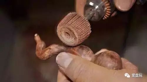 造型就是对粗坯进行细致的处理。造型通常使用电磨机,砂轮选择80目,一个小件能否有灵气,关键就在这一步骤了。电磨机跟木料的接触时一定要平滑,用力要均匀,不要太大,转速也要适中,一般选择3-4档的中速即可。还要根据不同的部位选择不同的砂轮。