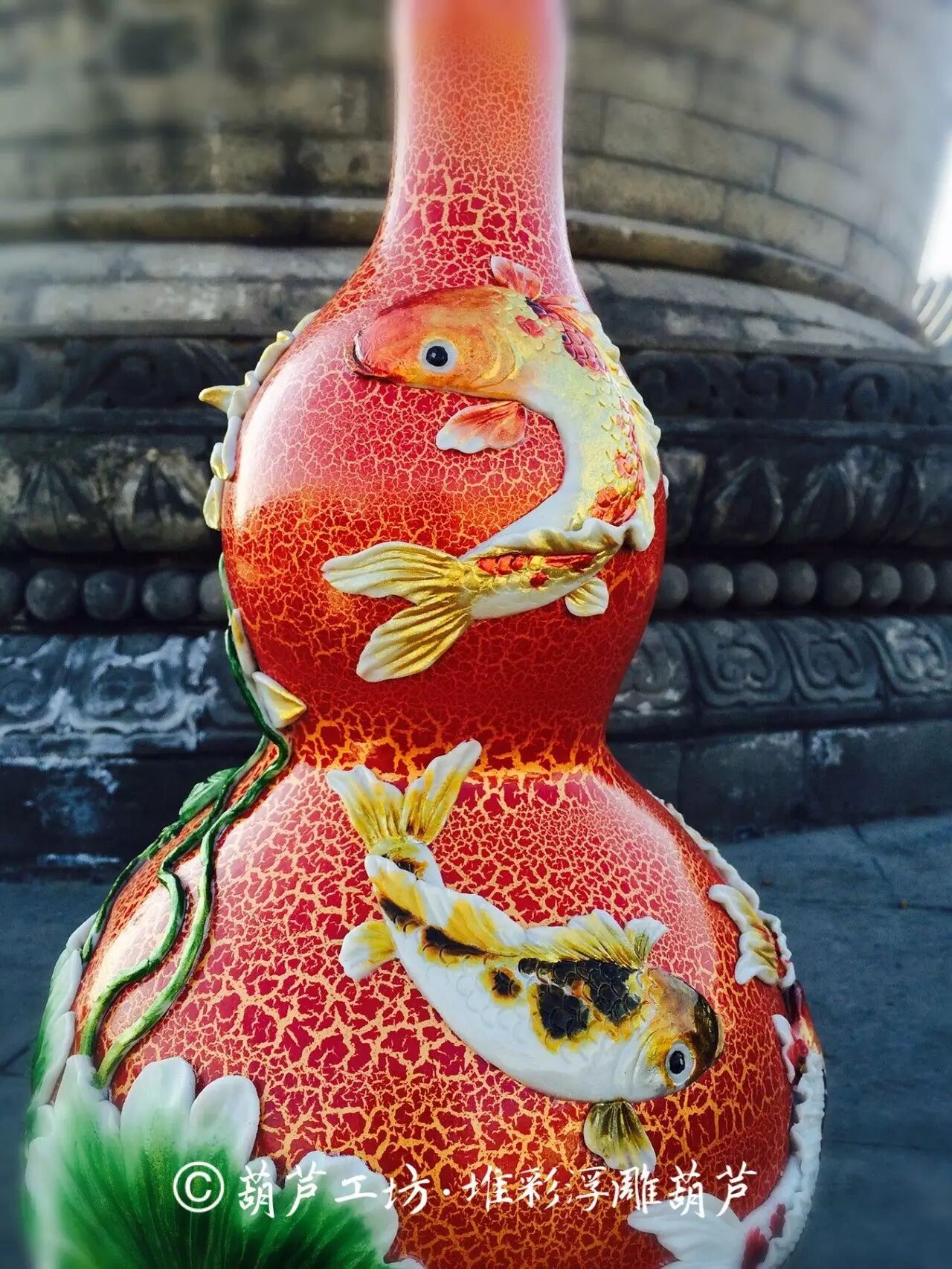 葫芦,谐音“福禄”,汉代以前,称“瓠”“匏”“壶”; 汉代以后,称“壶炉”“蒲炉”“葫芦”。明代医药大家李时珍在其所著的《本草纲目》中,曾经这样释名“壶卢”: “壶,酒器也;卢,饭器也;此物各象其形,又可为酒饭之器,因以名之。古人壶、瓠、匏三名皆可通称,初无分别。”