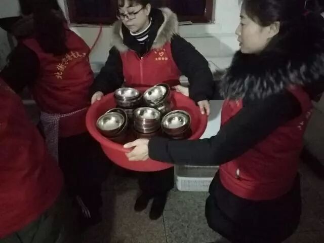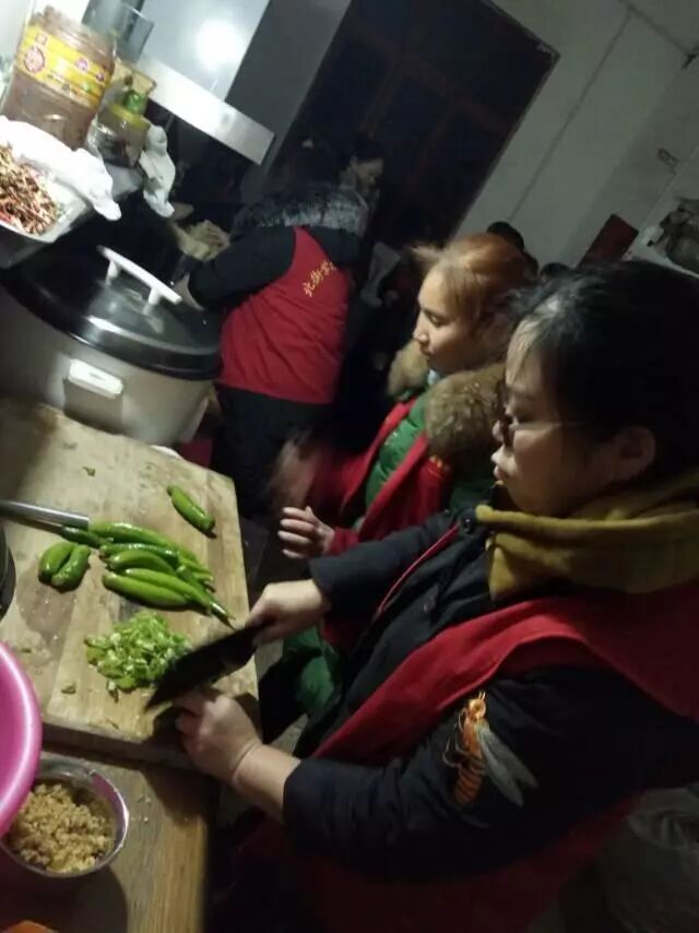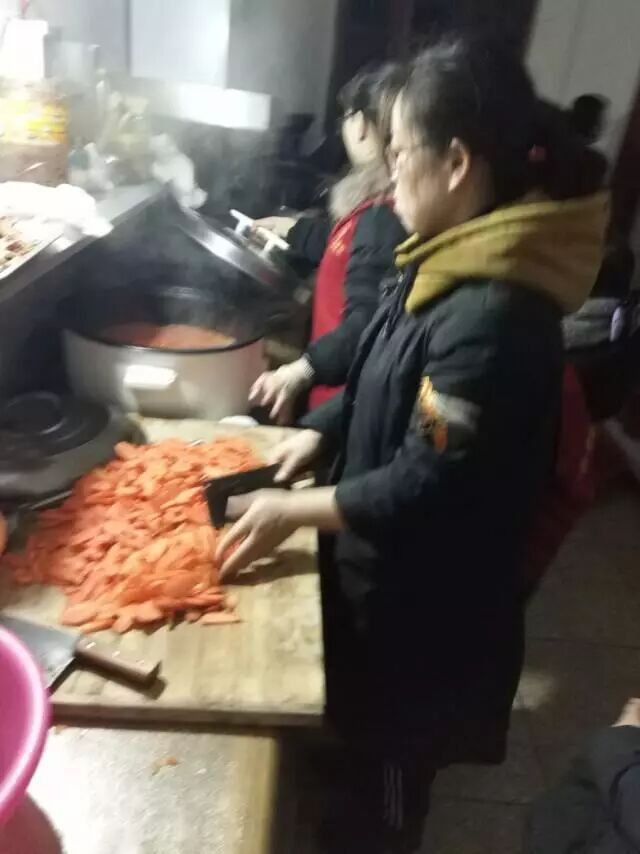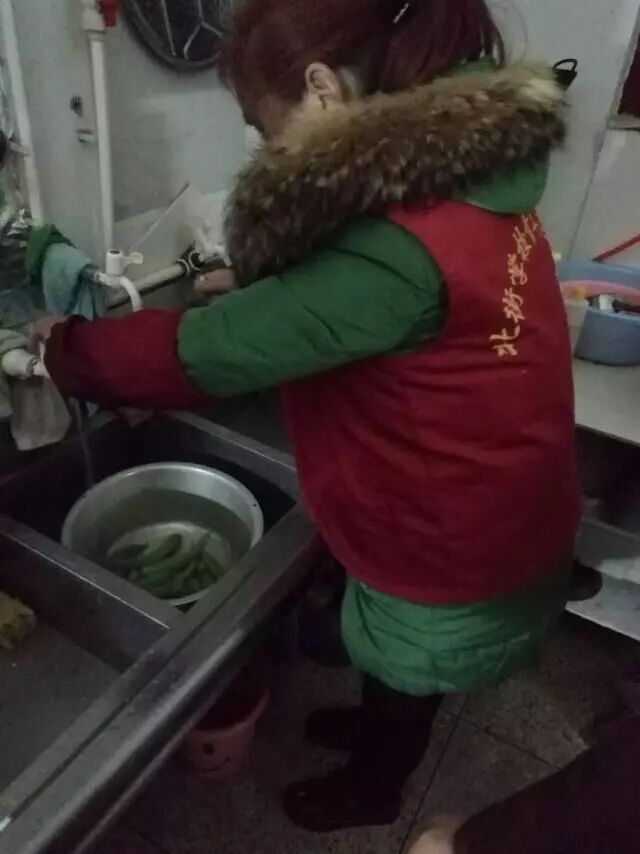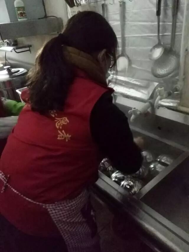 志愿者到达粥棚后,自动分工,立即进入爱心早餐的准备工作中。洗菜、切菜、煮粥,每位志愿者都做的那么投入。