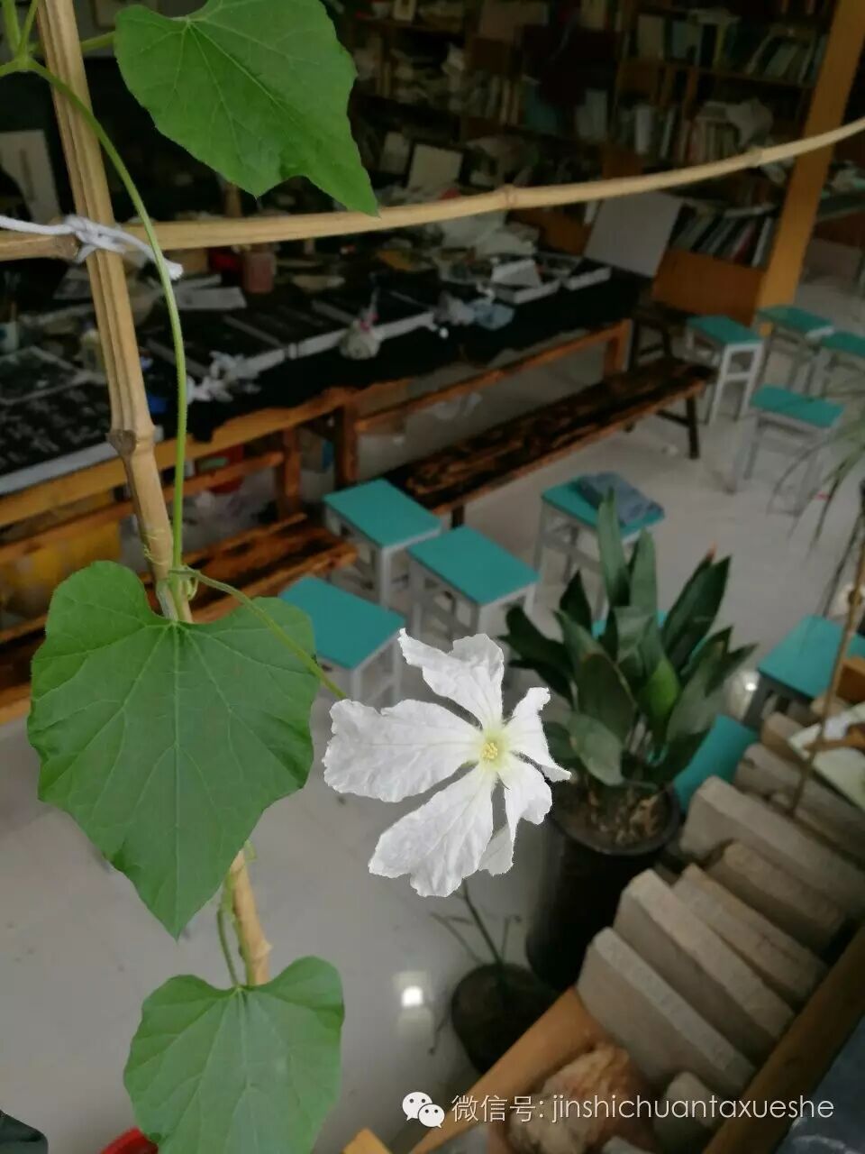 十一月看到盛开的葫芦花确实是很有成就感的。但实际上自己做的并不多,给了点向阳的光热和一点水。搭了一个很小的架子。最后是相信,相信一定会开花结果。现在来看,保持比较高的温度是最要紧的事情。教室大致像是暖棚。但虽然封闭,光照不足。密封性也很差。大大的花瓣一会被开门进来冷风吹得耷拉下来,一会又被光照的很精神。