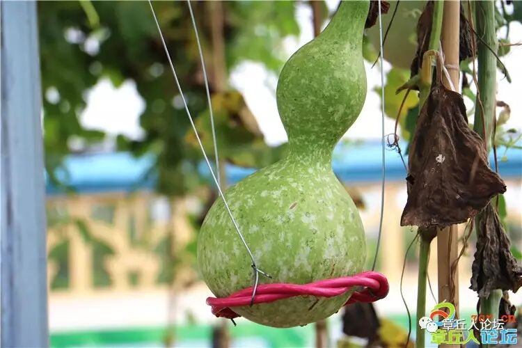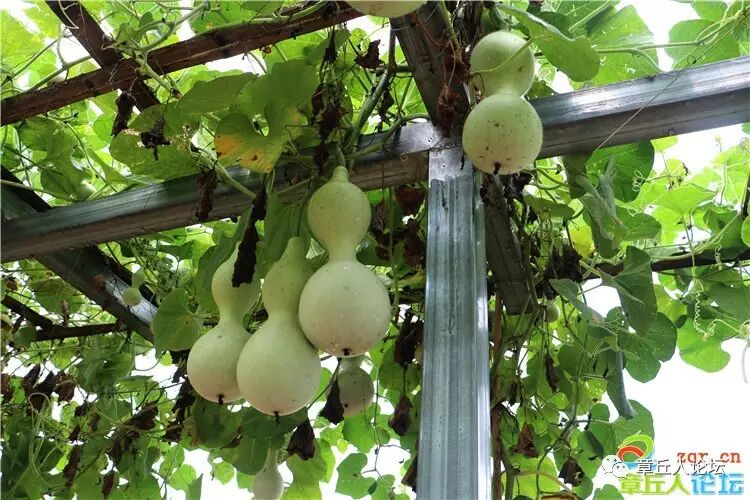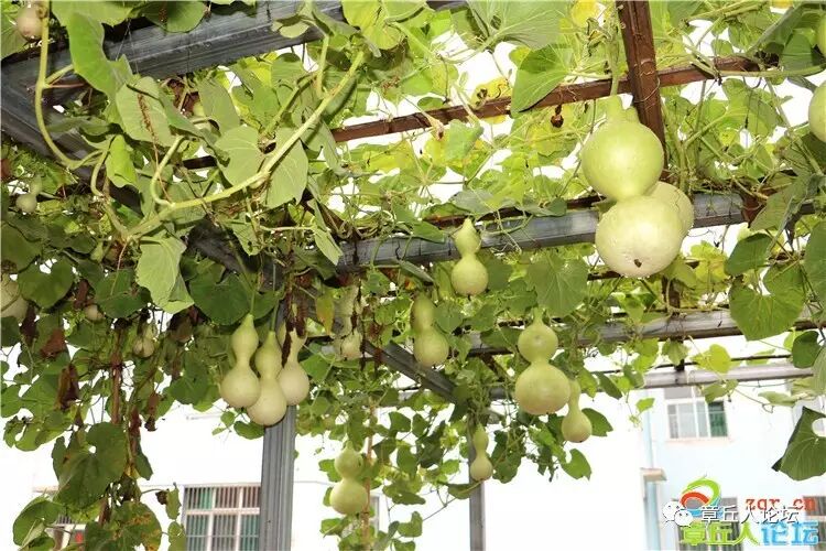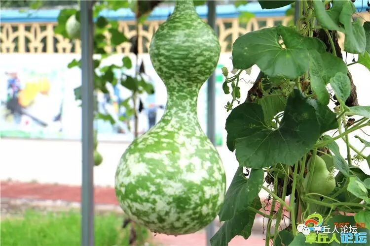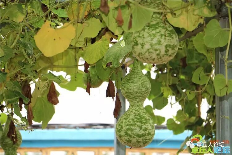 这是一种大的丫丫葫芦,一个个就像是葫芦娃,可以做工艺品的。据园里一位喜欢葫芦作画的老师说,在经过处理的葫芦上雕刻透明的栩栩如生的八仙过海、人物、山水等图案,描红上色,就成了一件地地道道的民间工艺品了。 ![]()